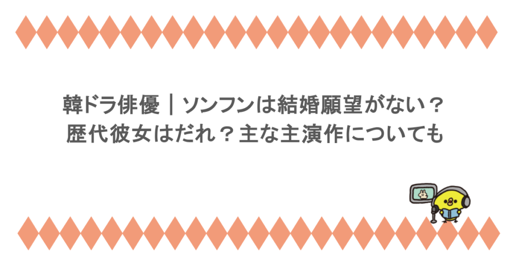 韓ドラ俳優|ソンフンは結婚願望がないって本当?歴代彼女はだれ?主な主演作についても